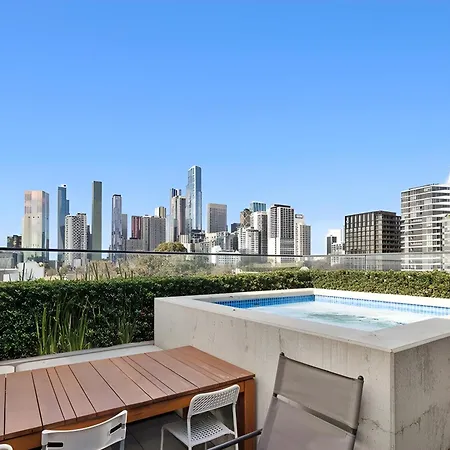 Jacuzzi With City Skyline View With Balcony Bar Melbourne apartment is situated in Melbourne, nearly 20 minutes on foot from the State Library Victoria, and offers spa amenities such as a hot tub. The apartment lies in the Melbourne CBD district, 2.6 km from ACMI.
